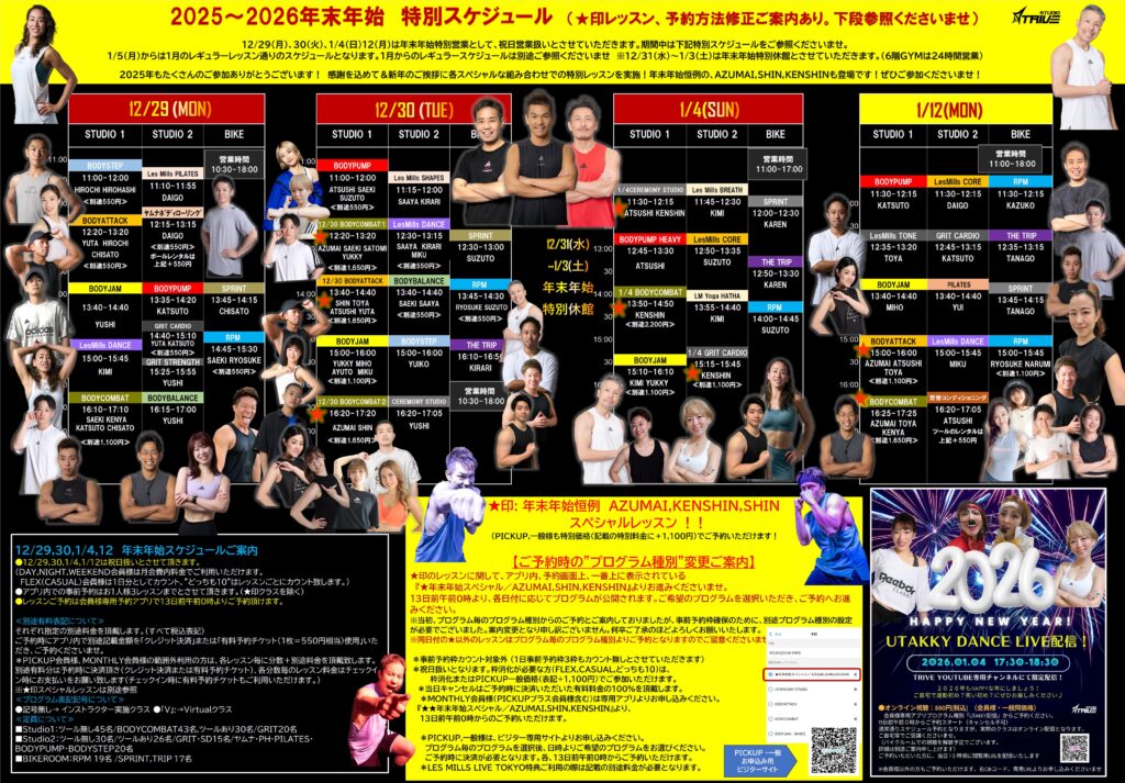 年末年始スケジュール内、★印のスペシャルレッスンに関しまして、事前ご予約枠確保に伴い、プログラム種別の別途設定が必要でございました。