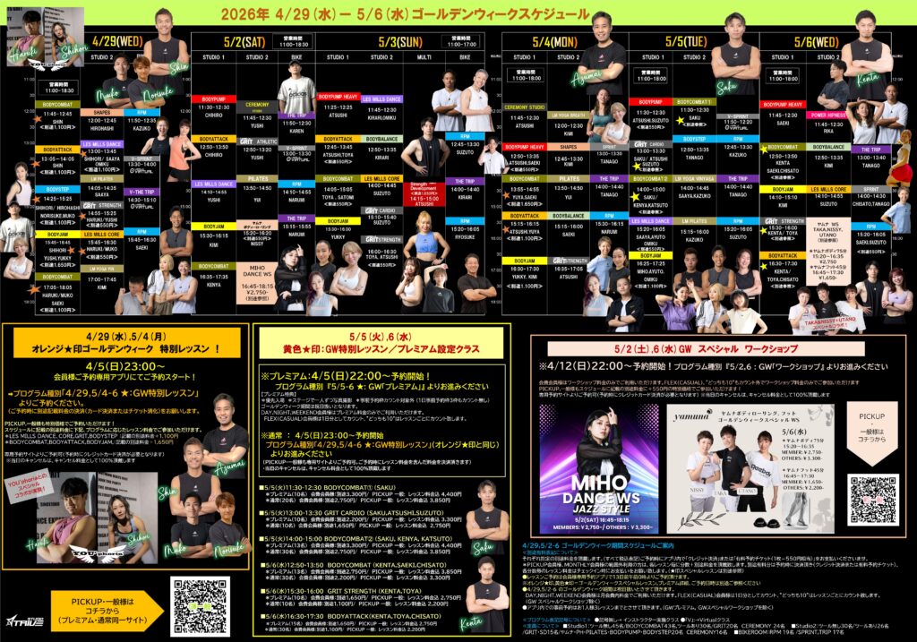 ゲストを招いてのスペシャルレッスンのお申し込みは、4/5(日)から会員様アプリでのご予約となります。皆様のご参加をお待ちしております!