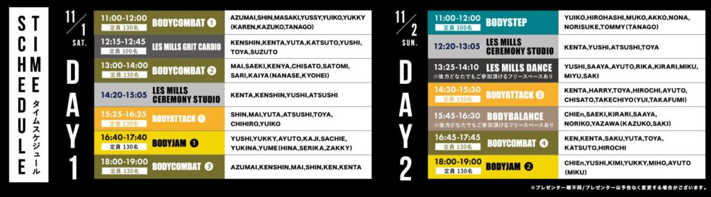 いつもSTUDIO TRIVEをご利用いただきありがとうございます。お待たせいたしました。11/1,2に行います【Les Mills Camp7】のスケジュールおよびメンバーを確定いたしましたのでご案内申し上げます!