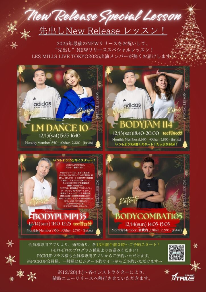 STUDIO TRIVEでは、12/20(土)より、インストラクターにより随時NEWリリースへ移行してまいります。